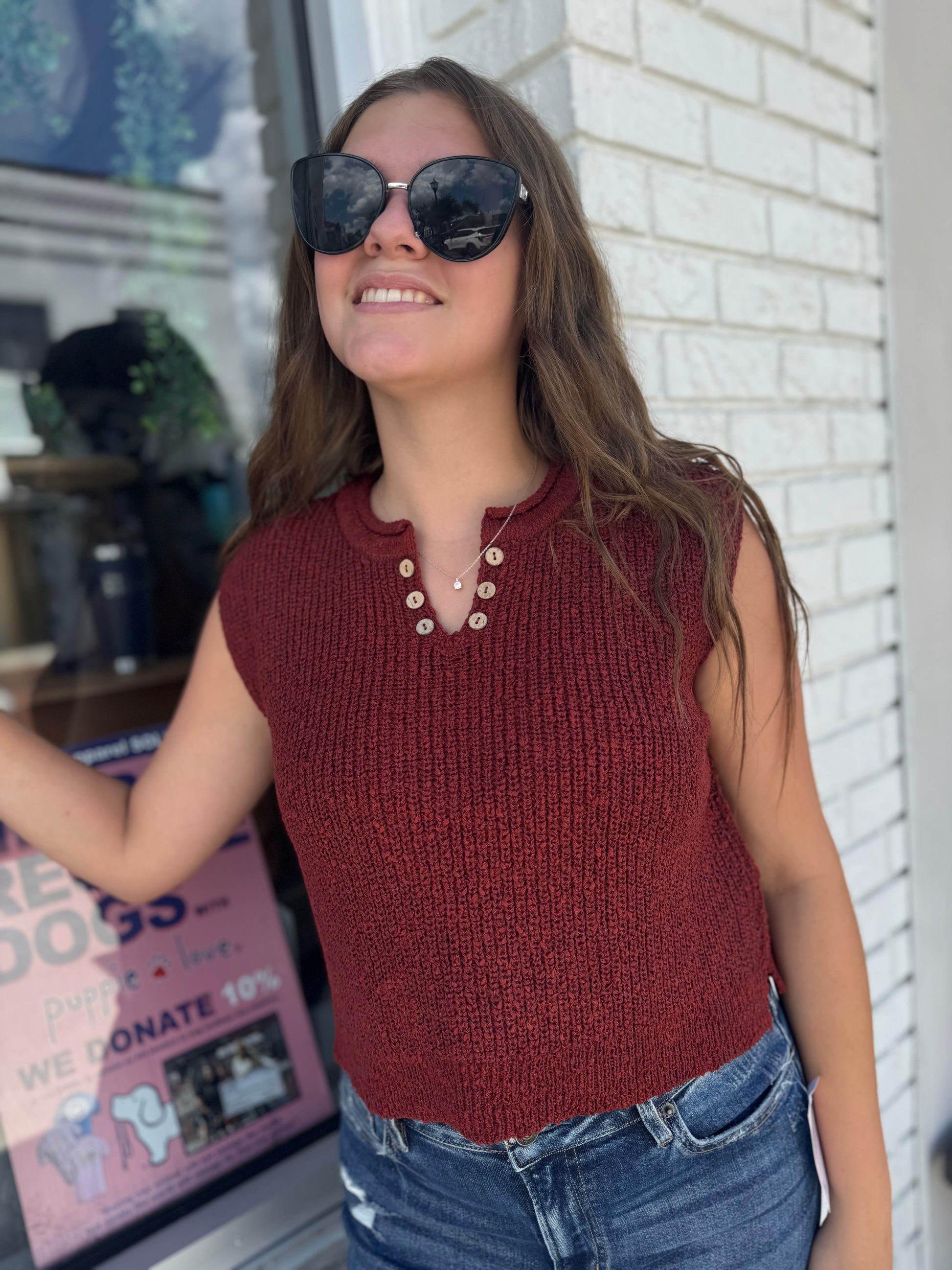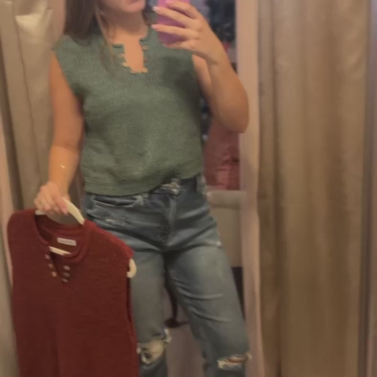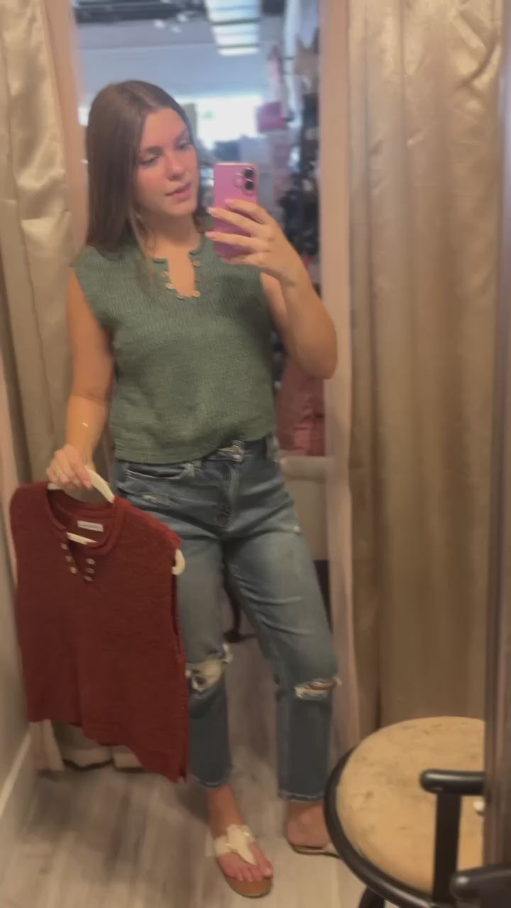 Say hello to the Button Breeze Split Vest — your new go-to for effortless style and comfort! This relaxed fit short sleeve knit vest features breathable fabric that keeps you cool all day long, plus a playful button detail at the neckline that adds just the right touch of charm. Perfect for layering or wearing solo, it’s ready to keep things fresh and fun wherever you go!