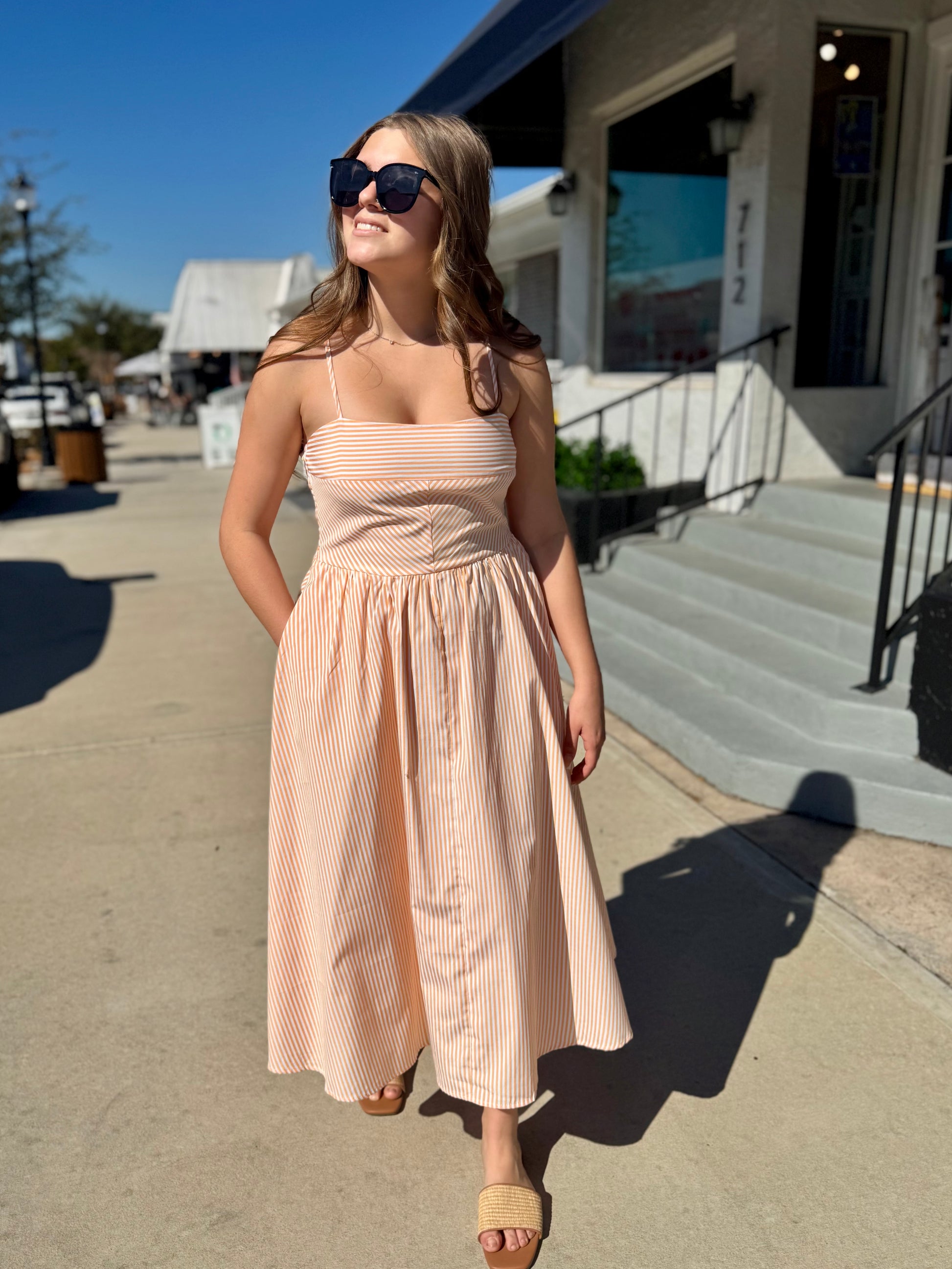 Float through spring and summer in pure bliss - the Sunlit Whimsy Dress is feather-light, flowy, and made for twirling. With a flattering empire waist and a dreamy maxi length, it’s all about effortless, breezy vibes.