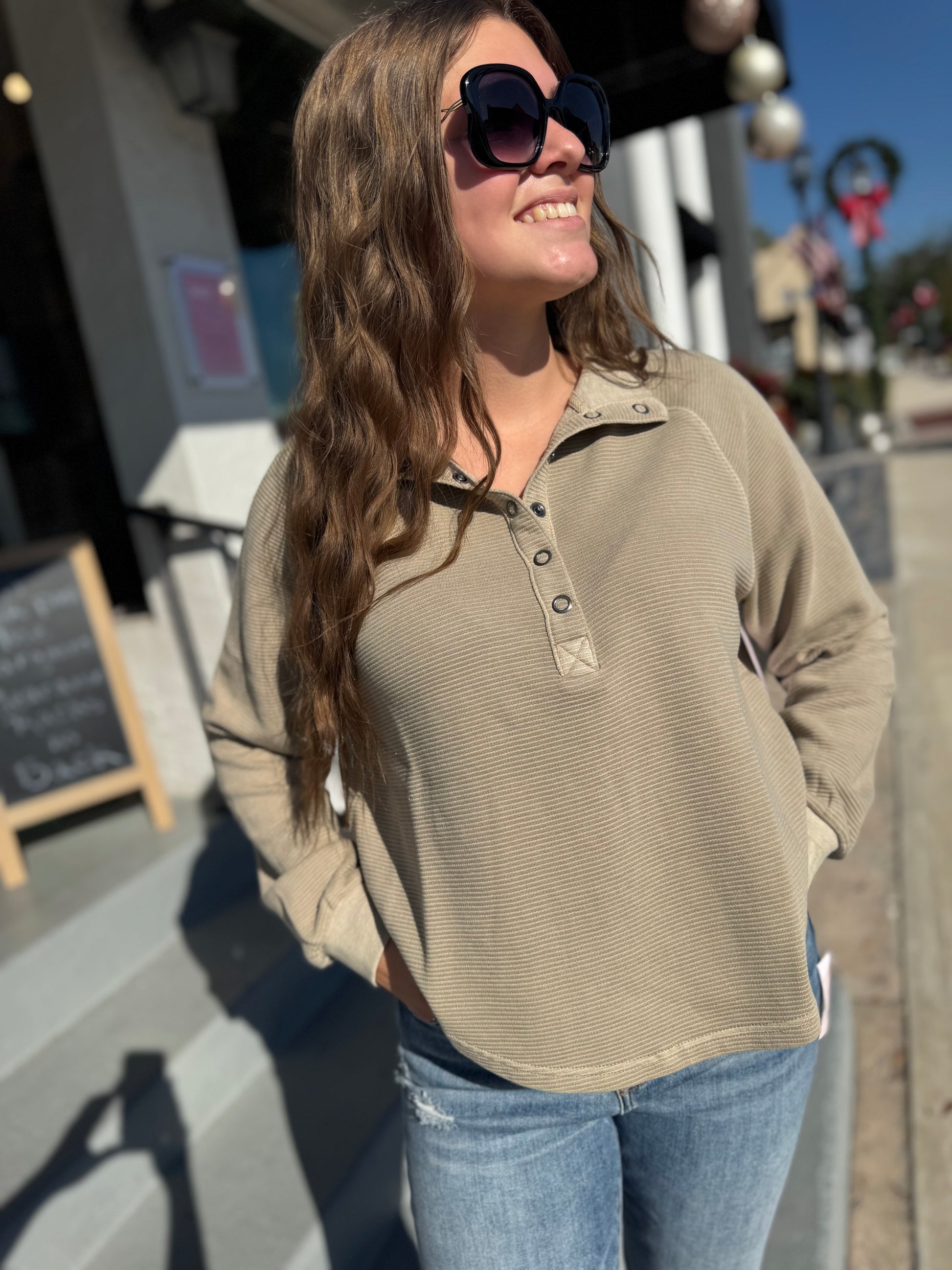 Snap, sip, slay! The Snap Happy Top is your new go-to for easy, fun, and laid-back style. Long sleeves, a relaxed fit, and a mock neck with snaps that add just the right amount of trendy flair — perfect for brunch, errands, or casual hangouts. Effortless vibes, zero fuss.