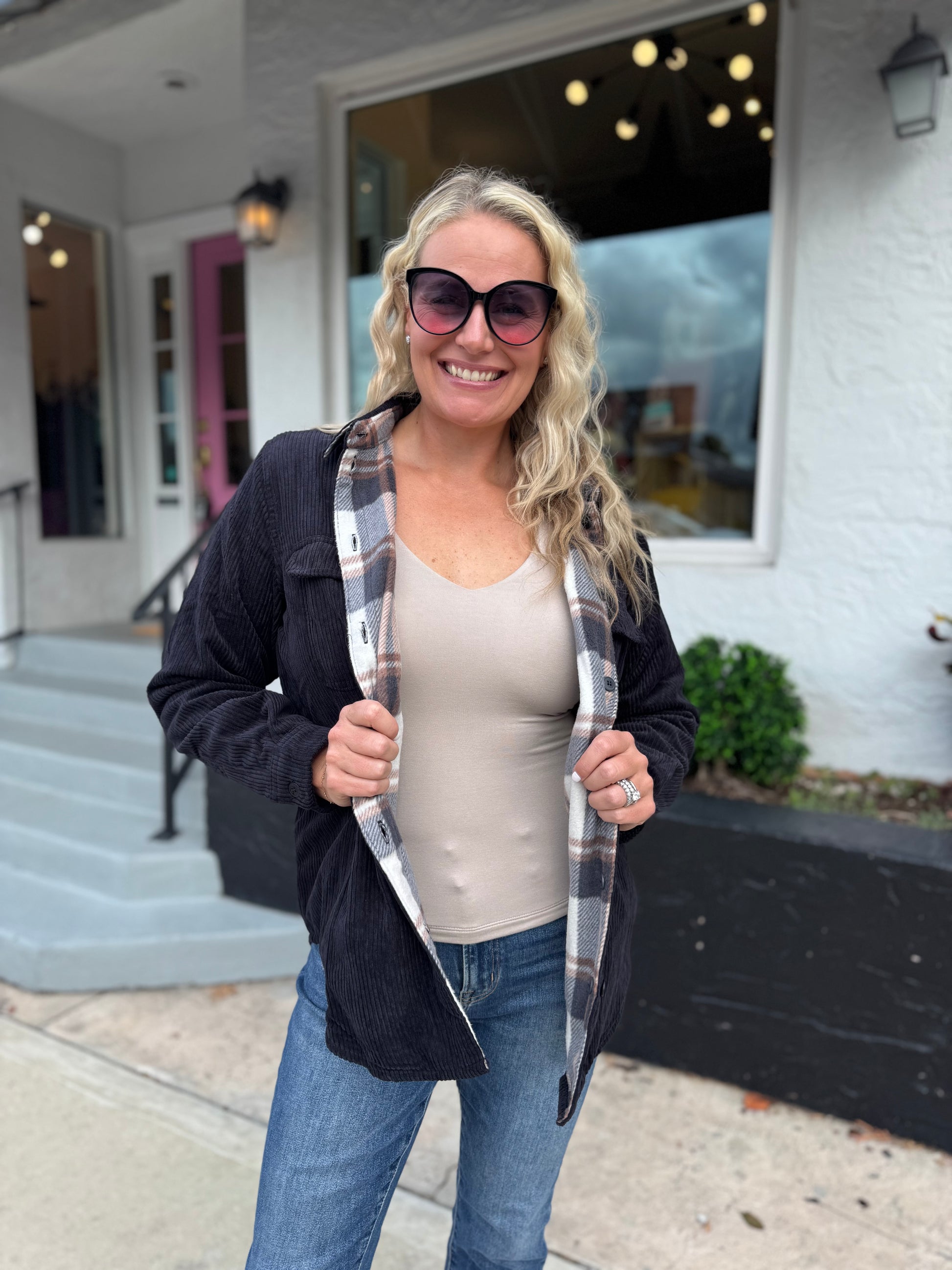 The journey is always more interesting when you take the road less traveled. With this Dusty Trails Reversible Corduroy Shacket, you'll be ready for whatever adventure comes your way. One side features corduroy fabric for a rugged look, while the other side is a soft plaid fabric. This shacket is perfect for layering on those cold days. And when you're ready for a new look, simply reverse it for a brand new style. Whether you're exploring the great outdoors or hitting the town, this shacket has you covered.