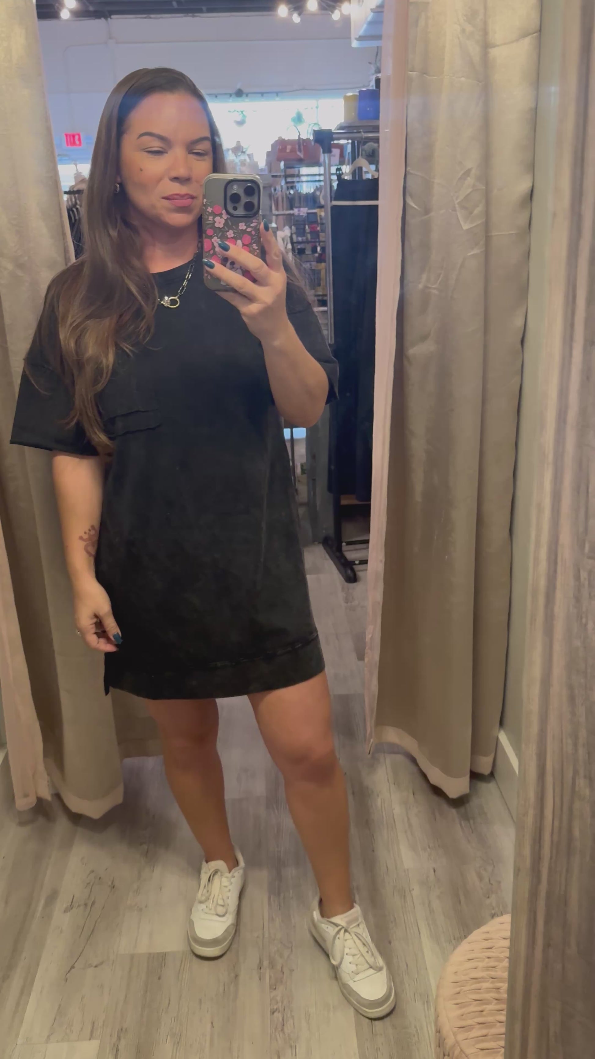 Meet your new fall uniform – the Errand Day Dress. This mineral washed t-shirt dress is all things fun, comfy, and effortlessly cool. With its laid-back fit and lived-in feel, it’s the perfect match for your favorite sneakers, coffee runs, and all those girl-on-the-go errands. Throw it on, look put together in seconds, and conquer your fall days with ease.