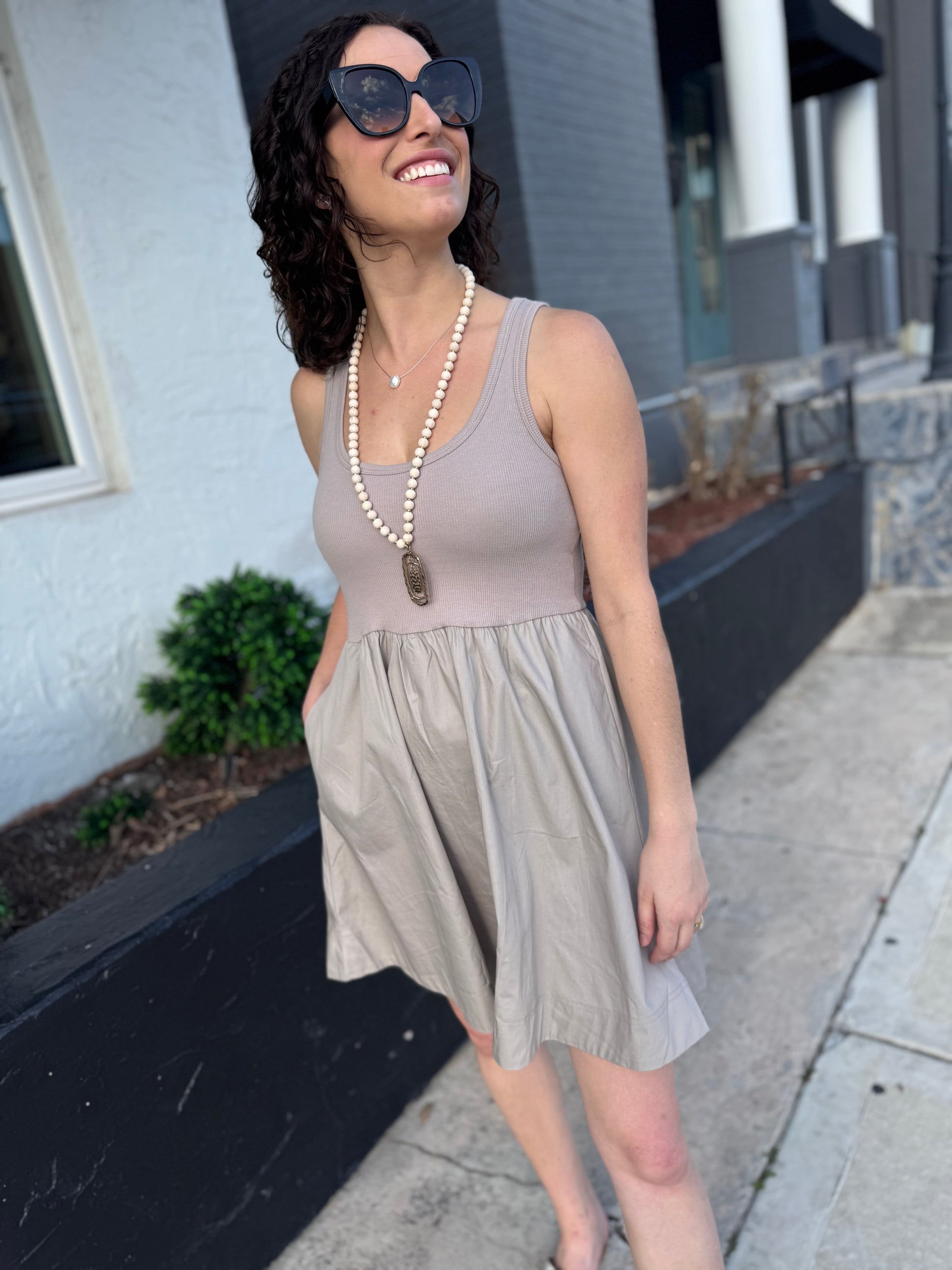 Meet your new go-to spring essential. The Spring Ease Dress features a comfy knit tank top paired with a lightweight woven skirt for the perfect balance of simple + stylish. It’s effortless, breathable, and made for those easy “throw it on and go” days.
