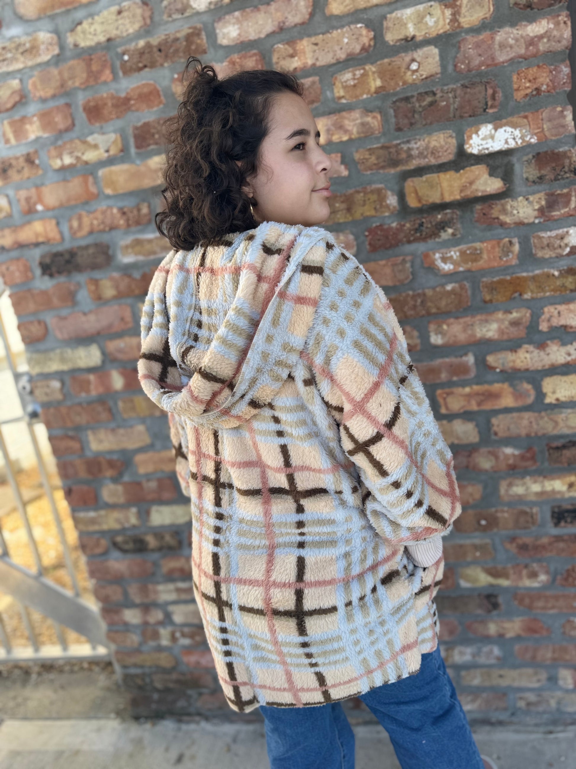 Wrap yourself in quirky coziness with The Teddy Cardigan! Made from soft, stretchy fabric, this oversized hooded cardigan features convenient pockets, making it the perfect mix of comfort and practicality. One size fits most, so get ready to snuggle up in style.